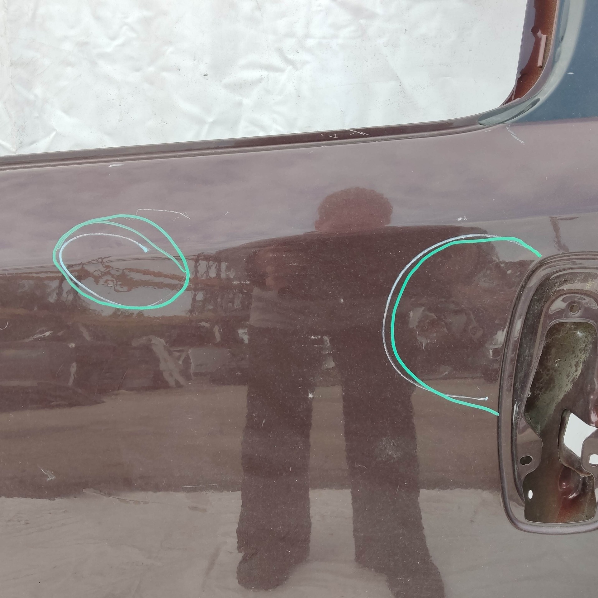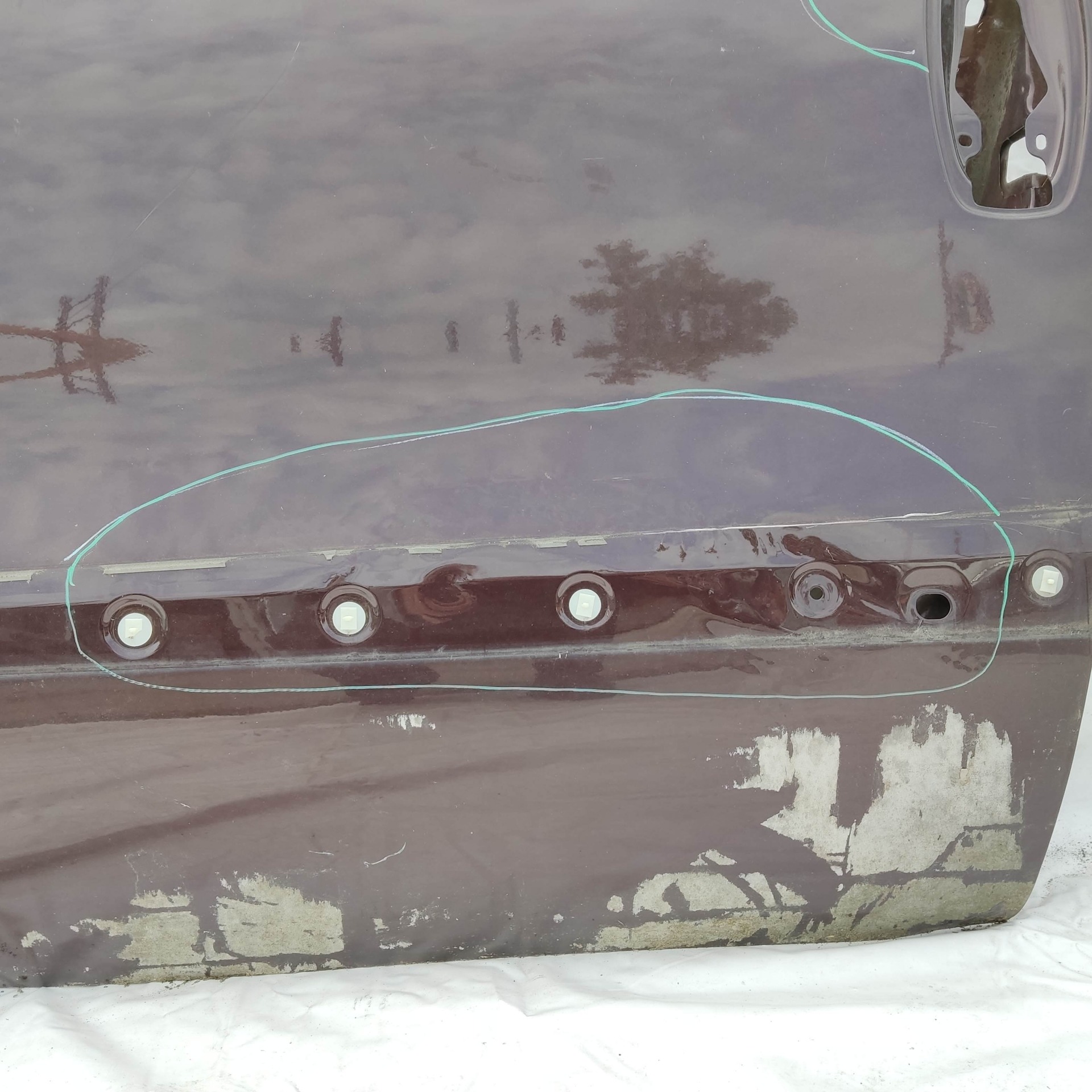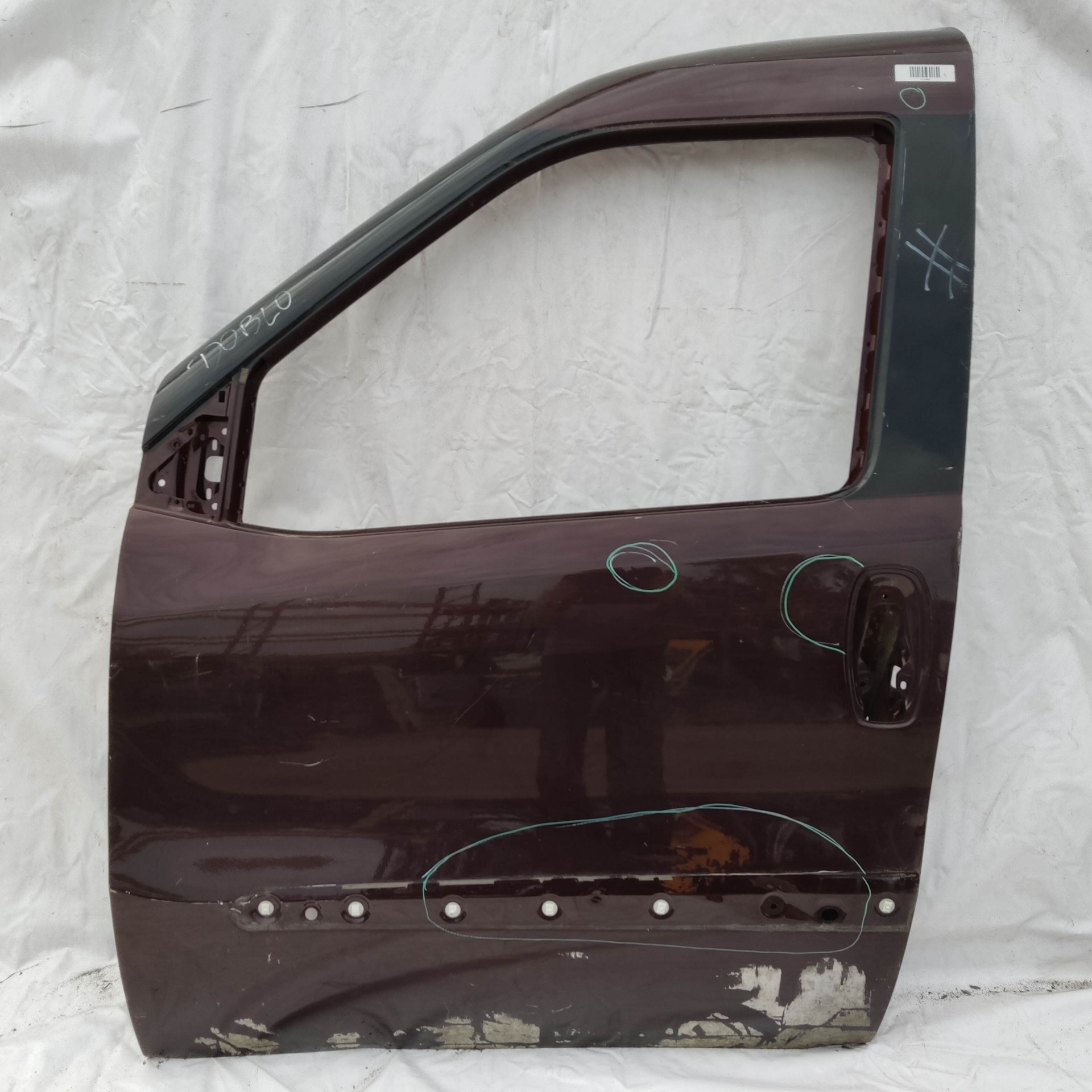 121995 Fiat Doblo 2009-2022 bal első bordó színű ajtó, a képen látható sérüléssel