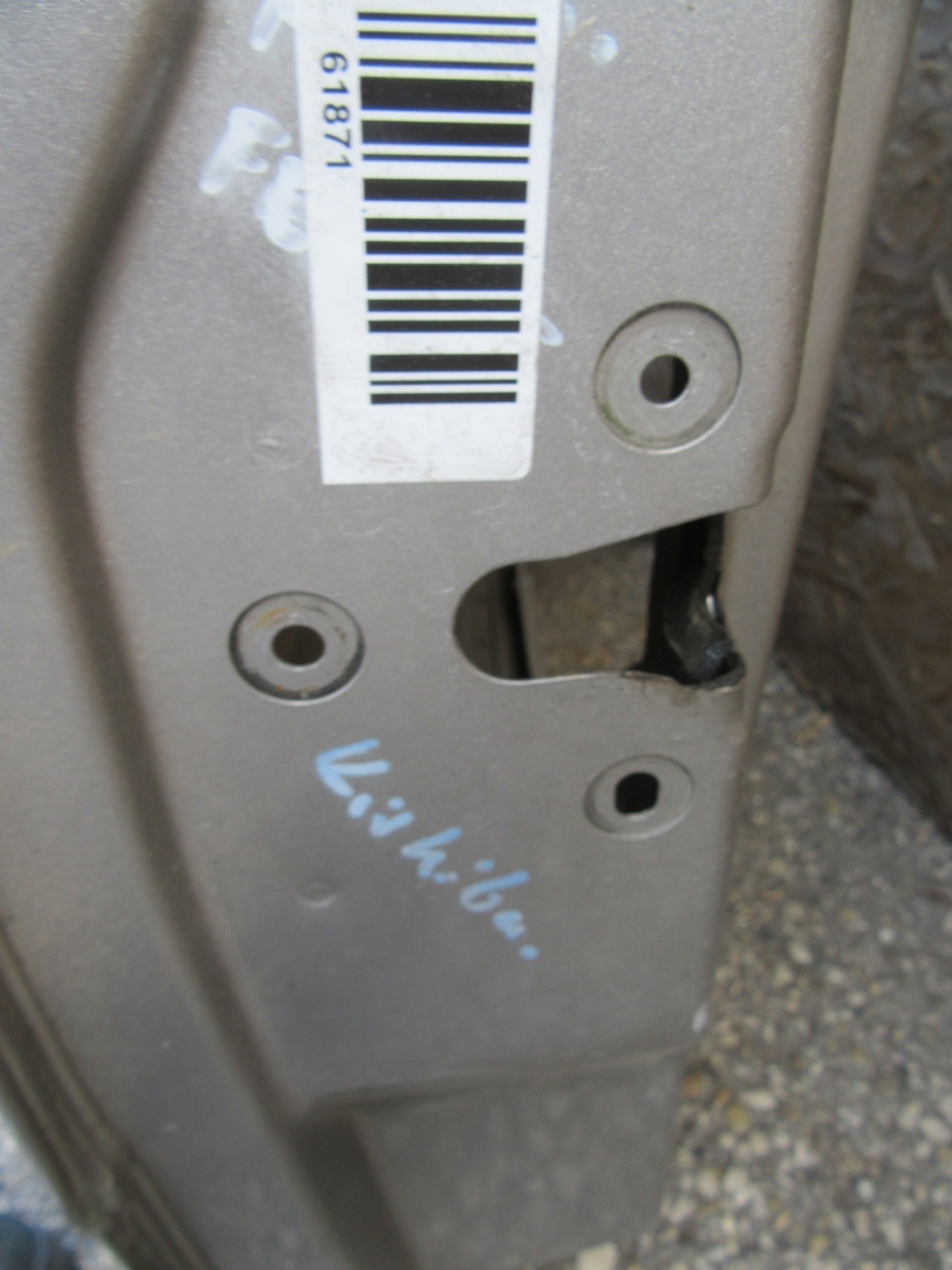 61871 Fiat Stilo 3 ajtós, ezüst színű bal oldali ajtó, a képen látható sérüléssel
