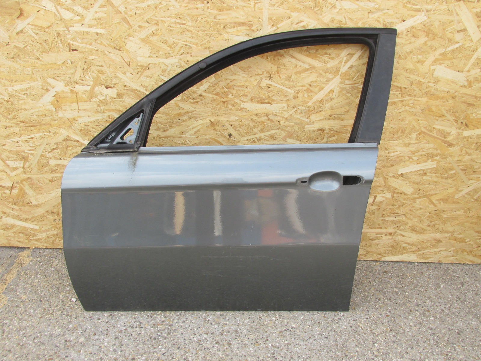 79358 Alfa Romeo 147 5 ajtós bal első grafitszürke színű ajtó, a képen látható sérüléssel