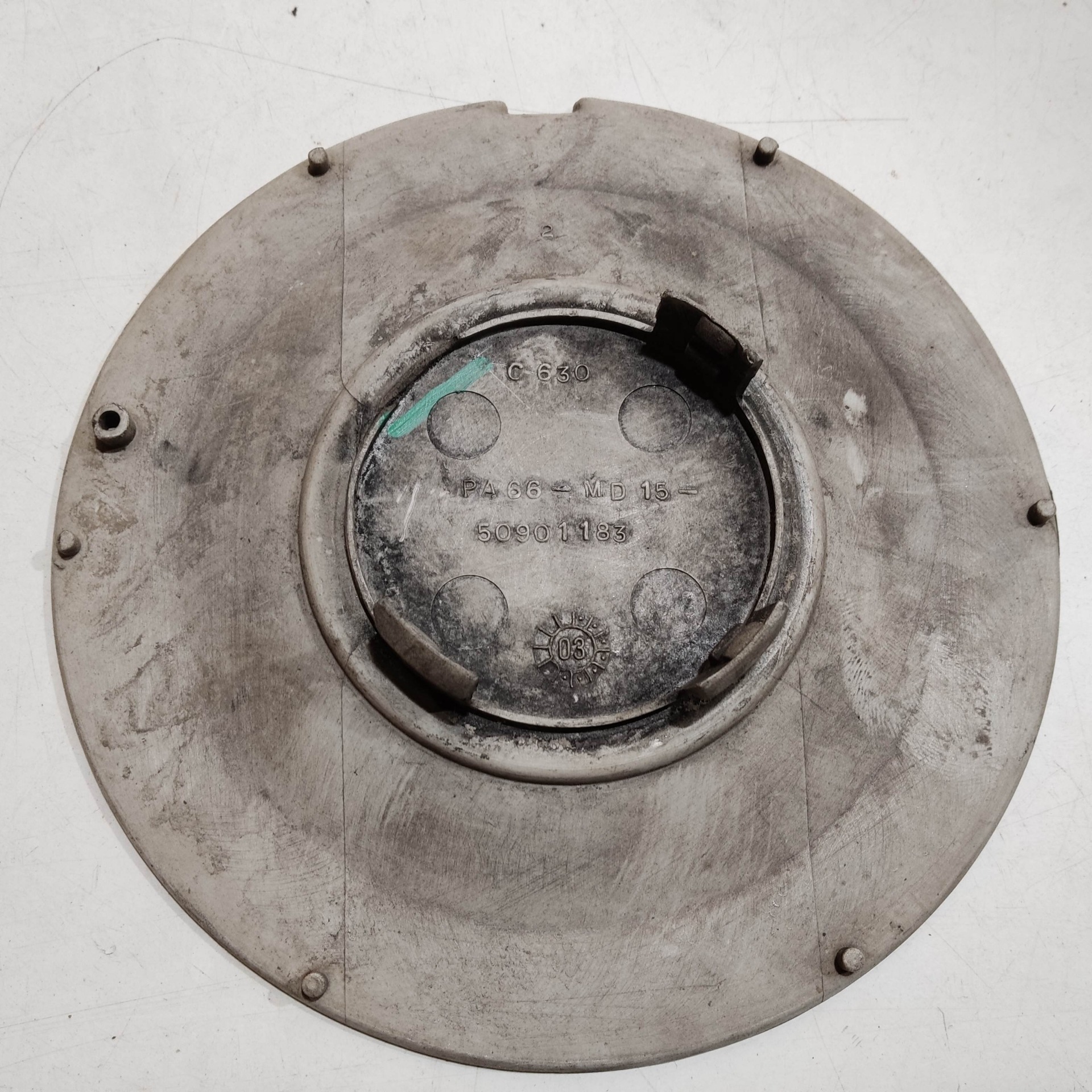 201177 Fiat Stilo 2001-2007 Felni közép kupak, a képen látható sérüléssel