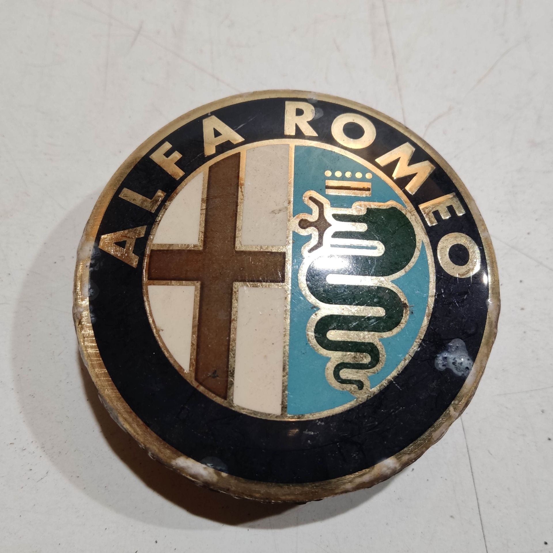 201433 Alfa Romeo 147, 156, 166, Gt felni közép kupak, átmérő 50 mm, képen látható állapotban