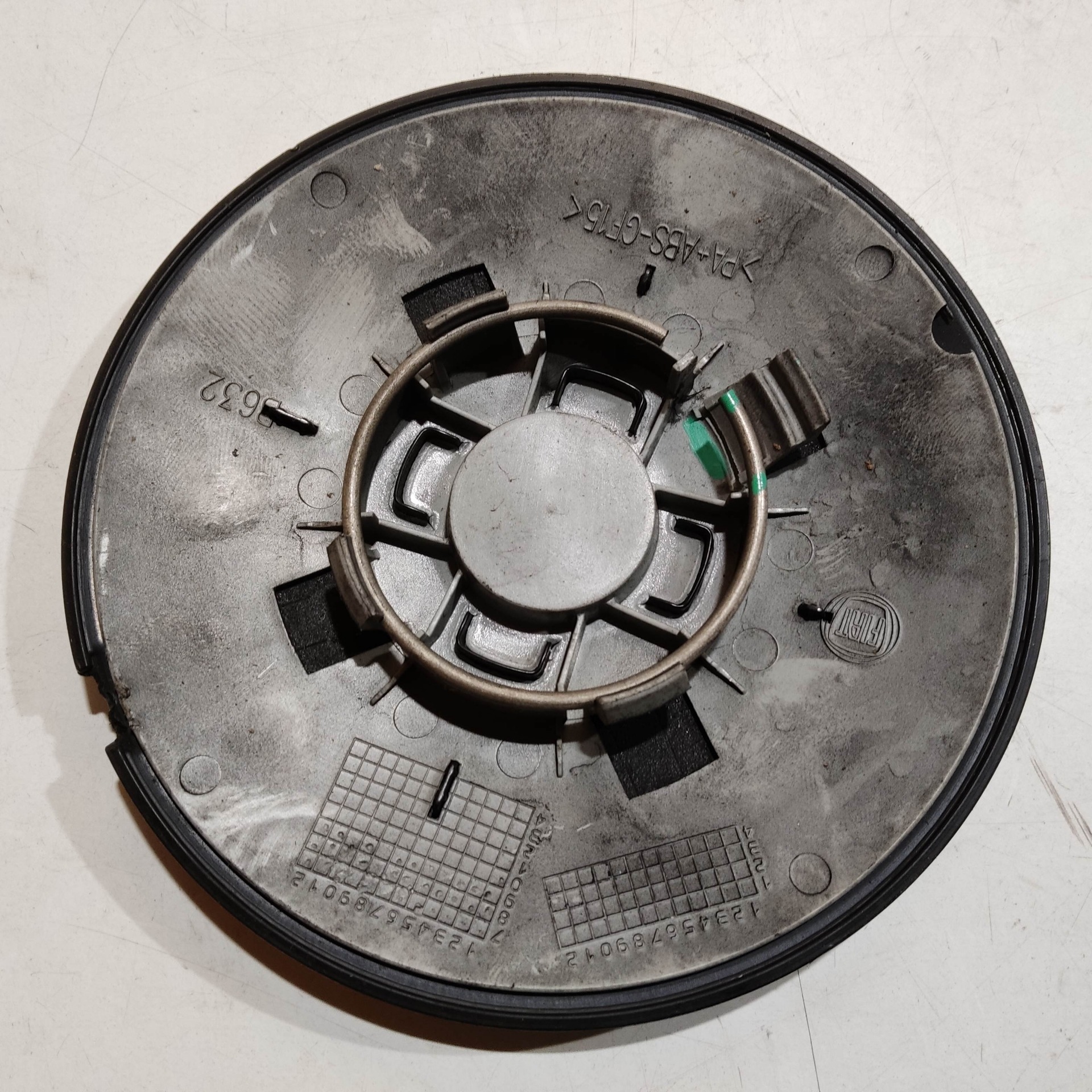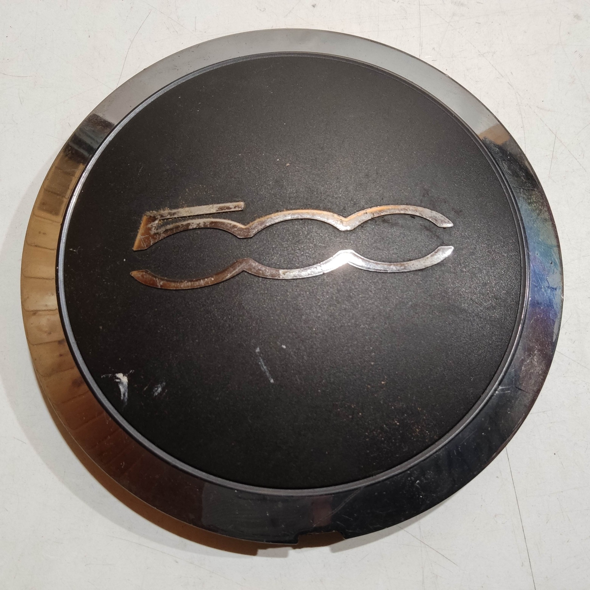 204470 Fiat 500 2007- felni közép kupak, a képen látható állapotban, egy rögzítő fül törött!!!