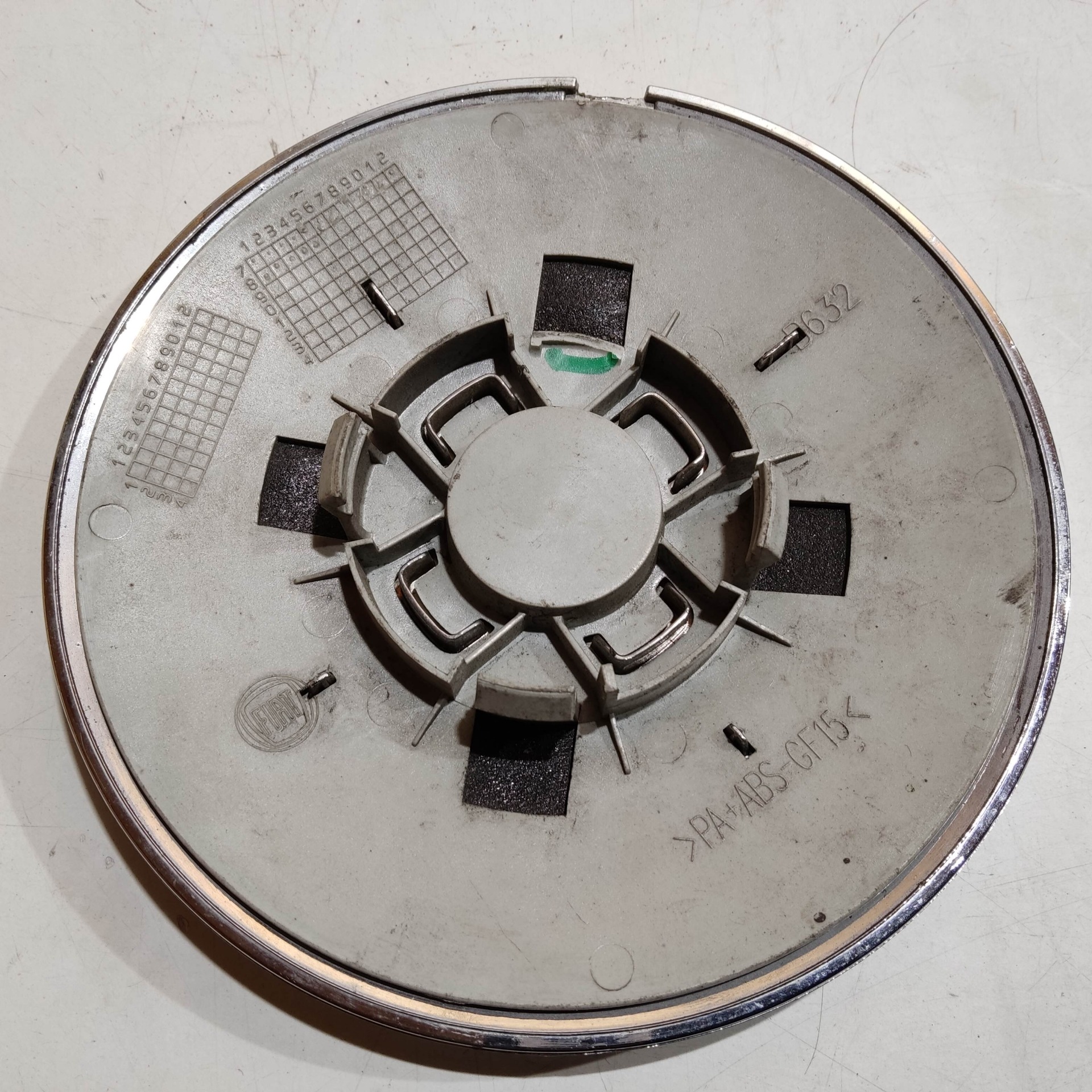 204483 Fiat 500 2007- felni közép kupak, a képen látható állapotban, egy rögzítő fül törött, rögzítő rugó nélkül!!