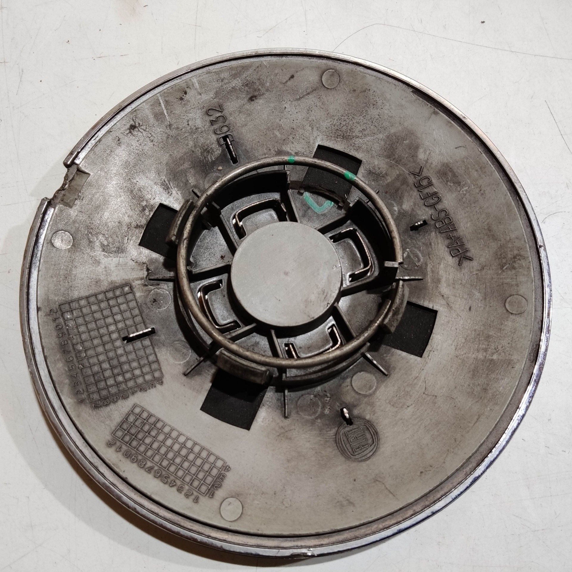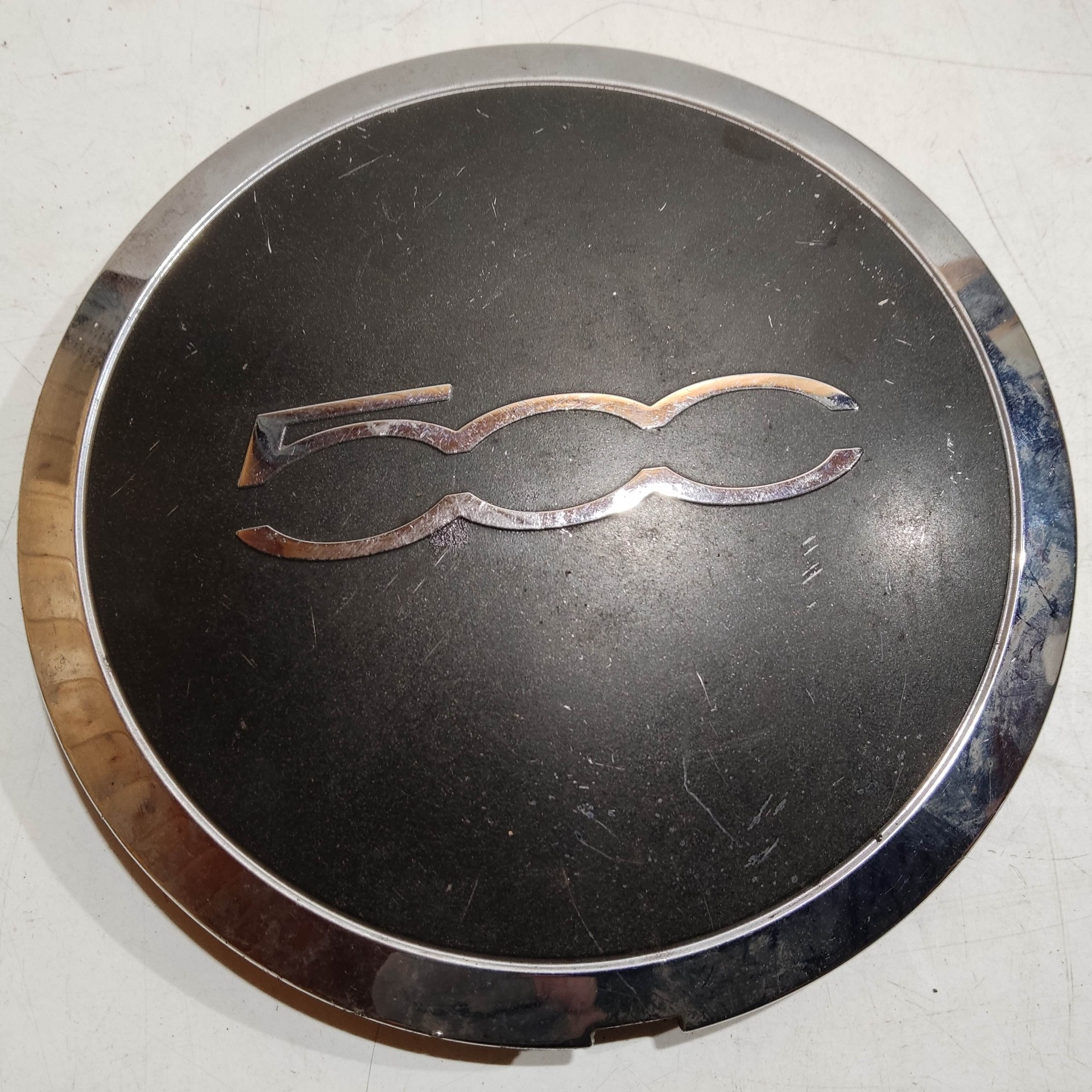204495 Fiat 500 2007- felni közép kupak, a képen látható állapotban, egy rögzítő fül törött