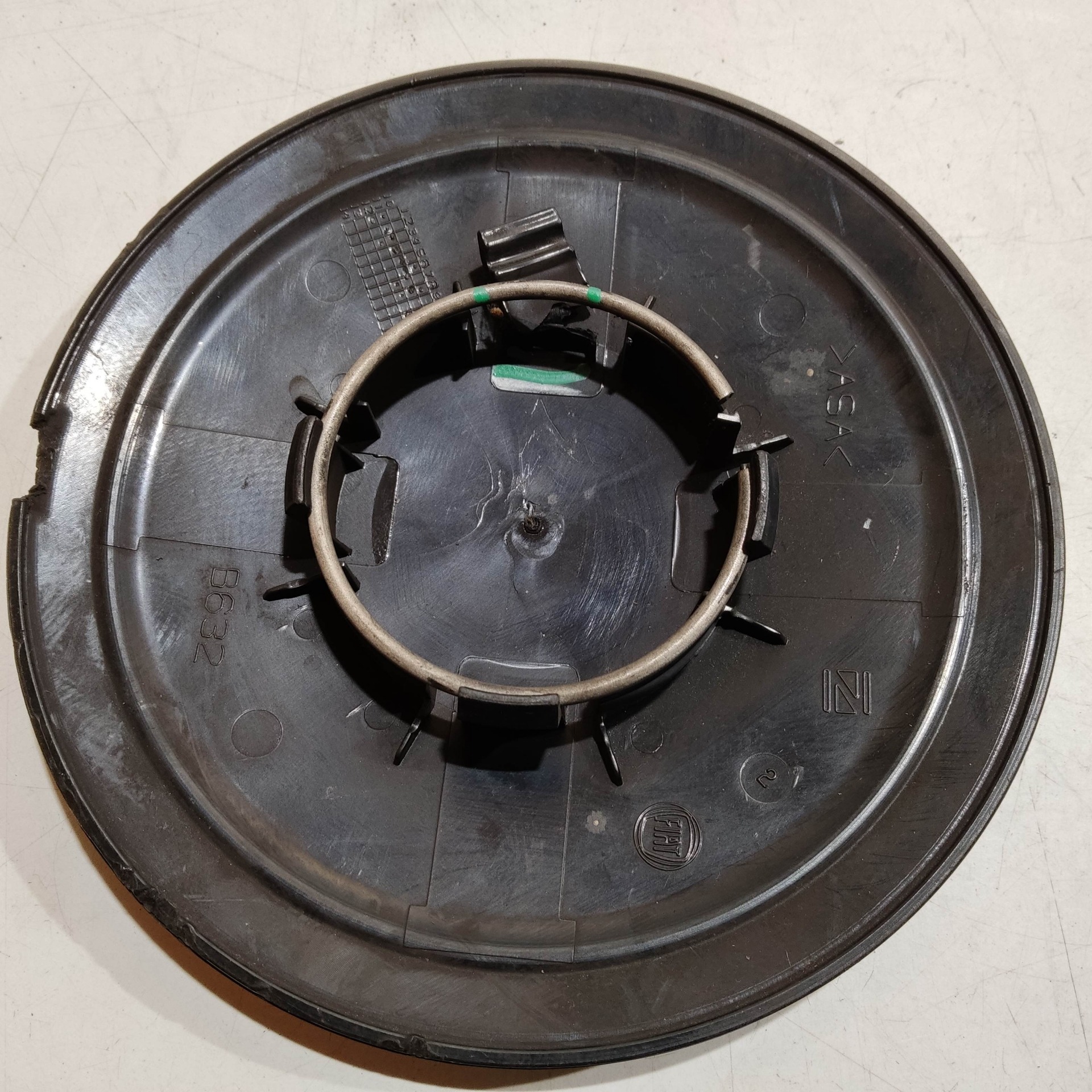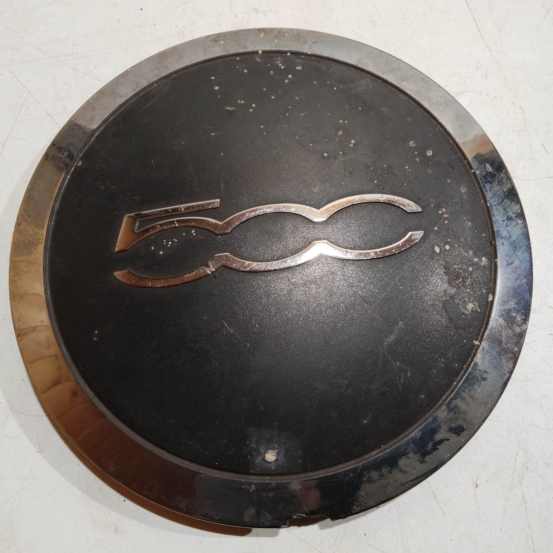 204498 Fiat 500 2007- felni közép kupak, a képen látható állapotban, egy rögzítő fül törött