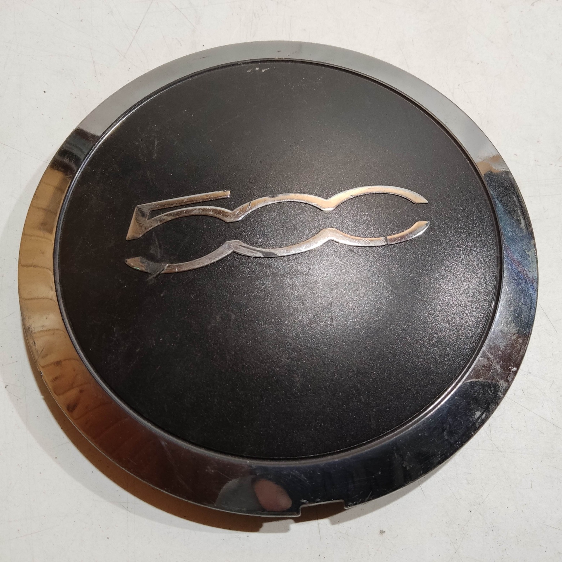 204507 Fiat 500 2007- felni közép kupak, a képen látható állapotban, egy rögzítő fül törött