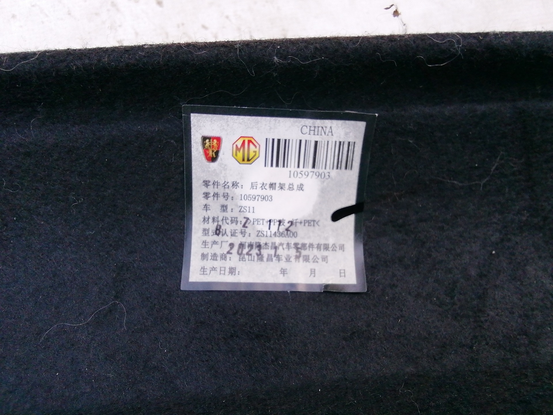 211073 MG ZS 2017-2024 kalaptartó egy támasztó gumibak hiányzik!