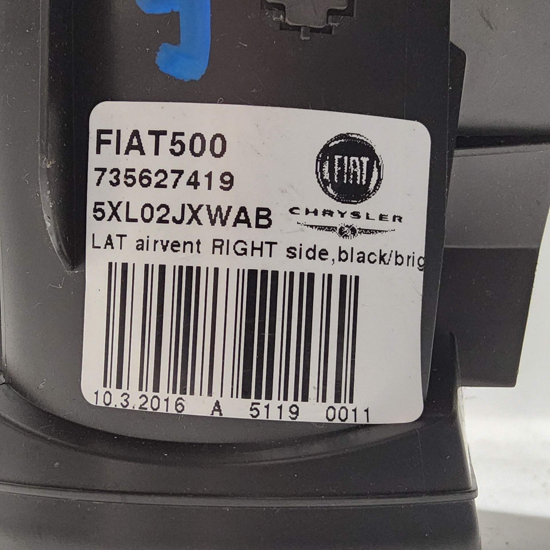 Fiat 500 735627419 számú, jobb oldali levegő beömlő